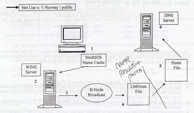 For example, if a non-WINS or B-node client wants to register its name on the network, it broadcasts a NetBIOS name registration request. The proxy agent detects this broadcast request and forwards it directly to the WINS server, which checks its WINS database to see whether the NetBIOS name is already being used on the network. If the name is in use, the WINS server responds to the proxy agent with a negative registration response, and the proxy server forwards this response back to the B-node client indicating that the name is already in use on the network.